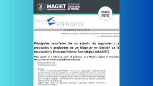 El pasado 30 de mayo fue publicado el artículo denominado: "Principales resultados de un estudio de seguimiento a graduadas y graduados de un Magíster en Gestión de la Innovación y Emprendimiento Tecnológico (MAGIET)" en la Revista Internacional ESPACIOS.